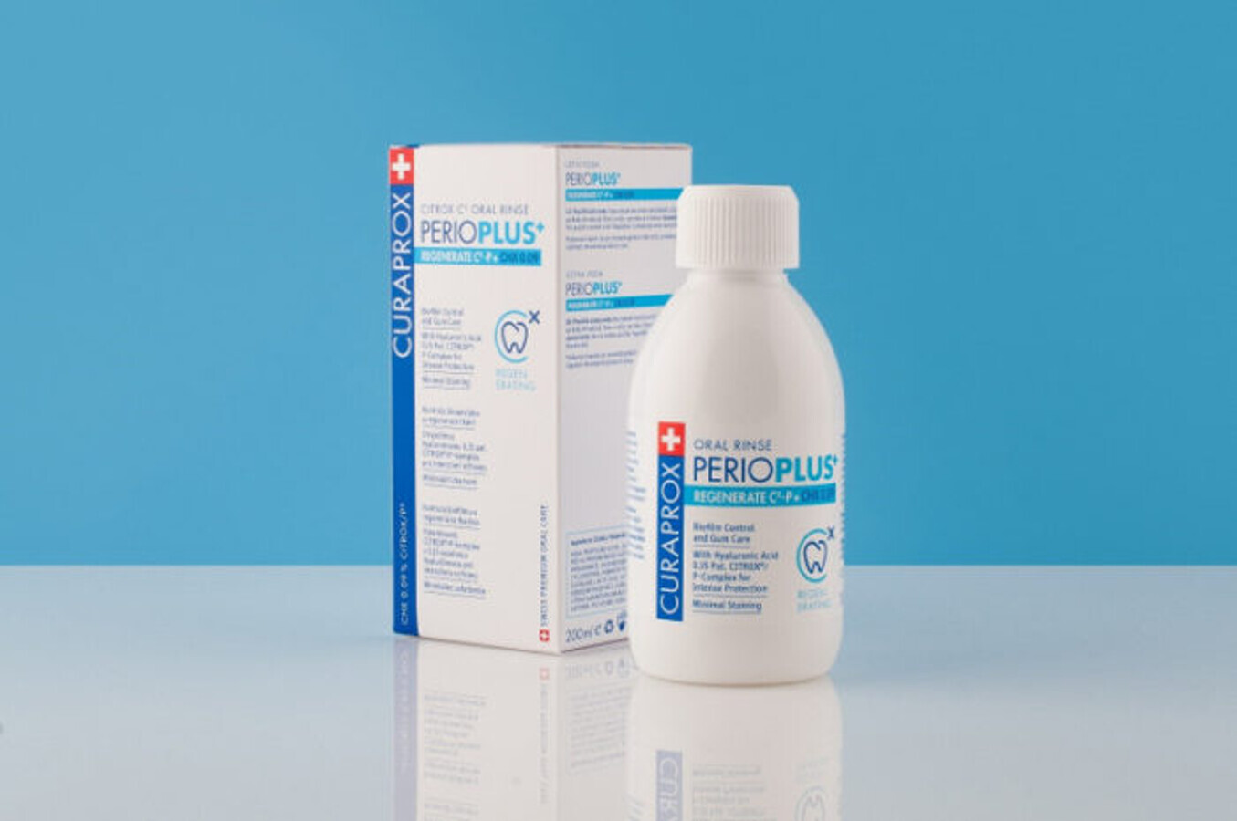 Perio plus regenerate mouthwash is specifically designed to support tissue regeneration in such instances, while acting as additional protection against bacterial infection and more. (Image: Curaprox)