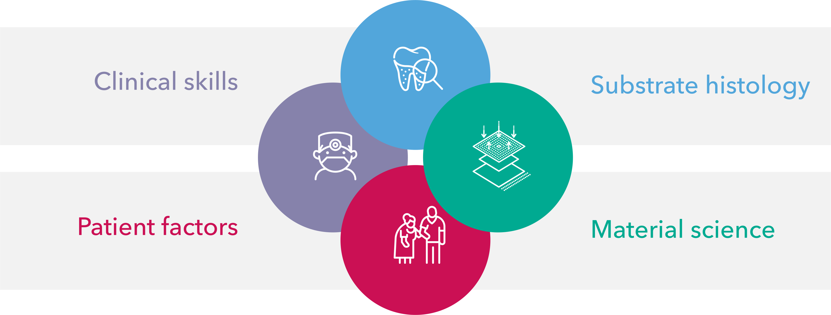 In cases where resin composite is used for restoration of root caries, how can the best adhesion be achieved? Again, having good judgement is crucial. Knowledge of the material highlights the significance of moisture control, which is essential for successful outcomes. Ideally, enamel would be present for proper adhesion. When encountering sclerotic dentine with higher mineral content, it’s important to consider the best etching system for optimal results. It’s based on an intricate decision-making process that includes all variables of the specific case, so putting forward just one approach seems inappropriate.