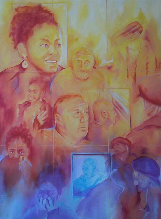 Artwork of local artist Gina Allen showing the emotional journey of patients receiving removable dentures. (Image: Gina Allen)