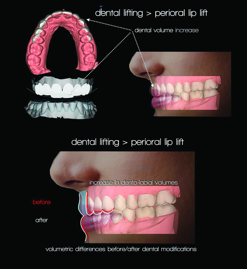 Taking of a joint medical history (aesthetic doctor, aesthetic dentist, speech therapist) and evaluation of the stomatognathic system: Collaboration between the different specialists and the interdisciplinary vision, as well as the implementation of digital images processed by software such as Invisalign’s ClinCheck and Aesthetic Digital Smile Design,29 allows one to better individualise the treatment plan, which, thanks to the advent of digital dentistry, can create a standard result predictive of an optimal clinical outcome.