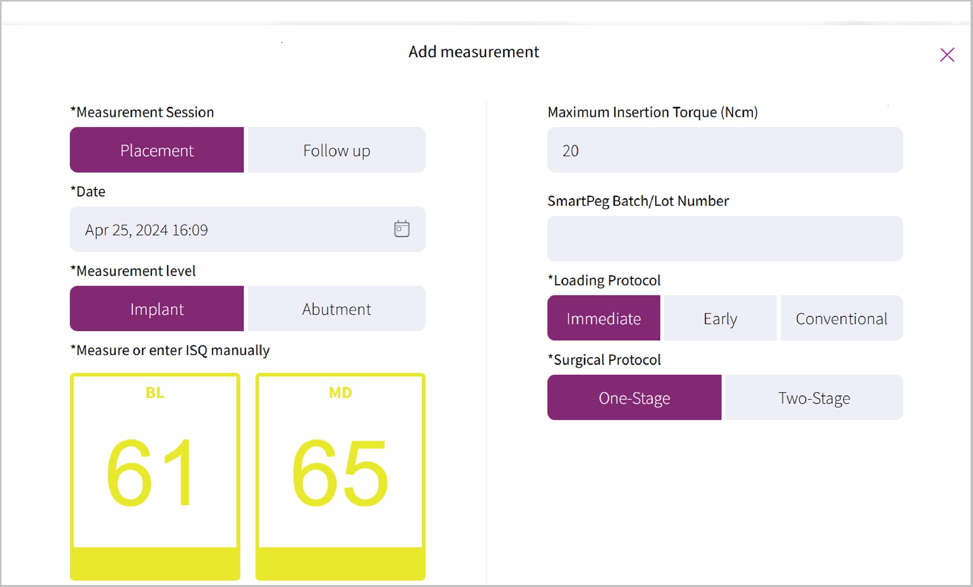 The issue is one of perception and threshold. Since many clinicians now happily use torques of 75 Ncm or more, the idea of placing an implant to 20 Ncm seems unreliable at best and high risk at worst, and there has been a complete failure to grasp the notion that 20–25 Ncm represents a likely threshold above which additional increases in torque yield little in the way of added stability, but only damage the bone. I first proposed this idea in 201110 and again discussed it in an editorial in the International Journal of Oral and Maxillofacial Implants,11 and I presented subsequent research demonstrating that baseline resonance frequency analysis (RFA) can yield implant stability quotient (ISQ) values approaching or even exceeding the desired target of 70 when using an insertion torque of ≤ 25 Ncm.12 More importantly, the singular benefit of RFA is the ability to repeat measurements over time, enabling the clinician to infer the dynamic biological changes that are taking place during healing and thus gain objective evidence of ongoing osseointegration, thereby allowing the clinician to restore the implant at the most appropriate time and with greater confidence. In contrast, insertion torque is a once-off measure and can therefore provide no longitudinal information about the dynamic process of osseointegration. The following case report is an everyday example of my own experience of placing implants into extraction sockets, followed by immediate provisionalisation, using low insertion torque and performing RFA to document the ISQ values over time.