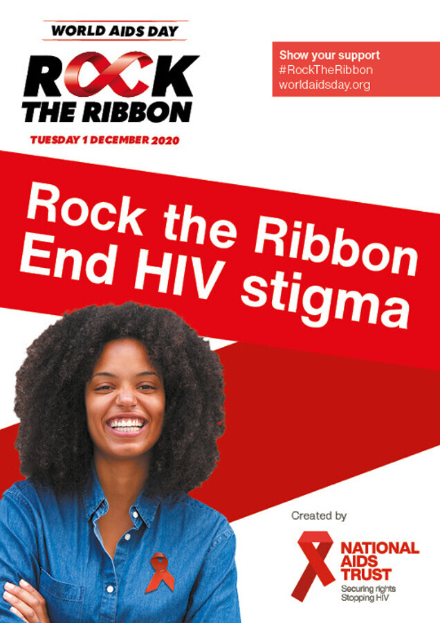 The UK World Aids Day campaign asks people to “rock the ribbon” as a sign of support and solidarity. (Image: National AIDS Trust/Shutterstock)